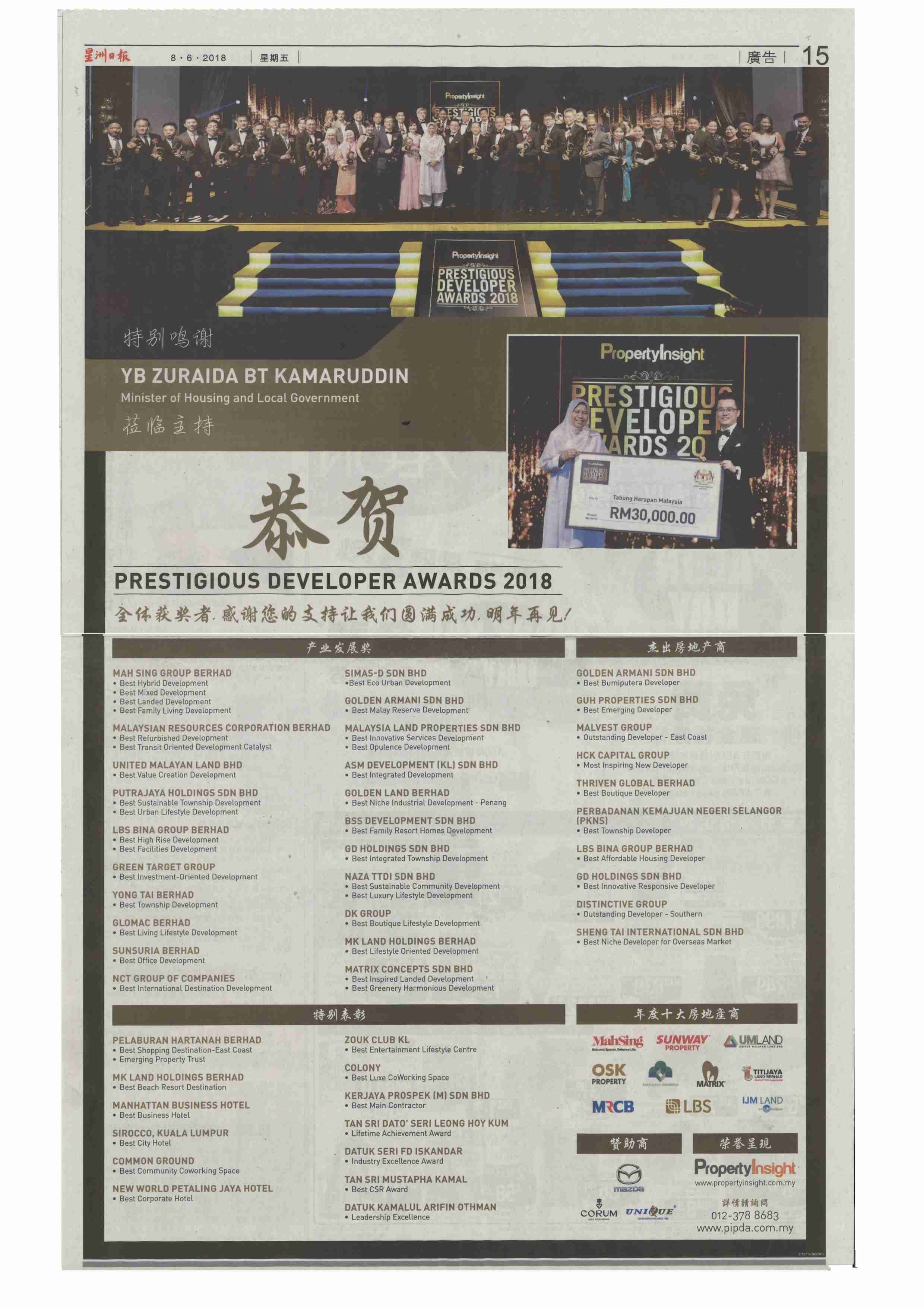 08-06-2018 – Property Insight Prestigious Developer Awards 1